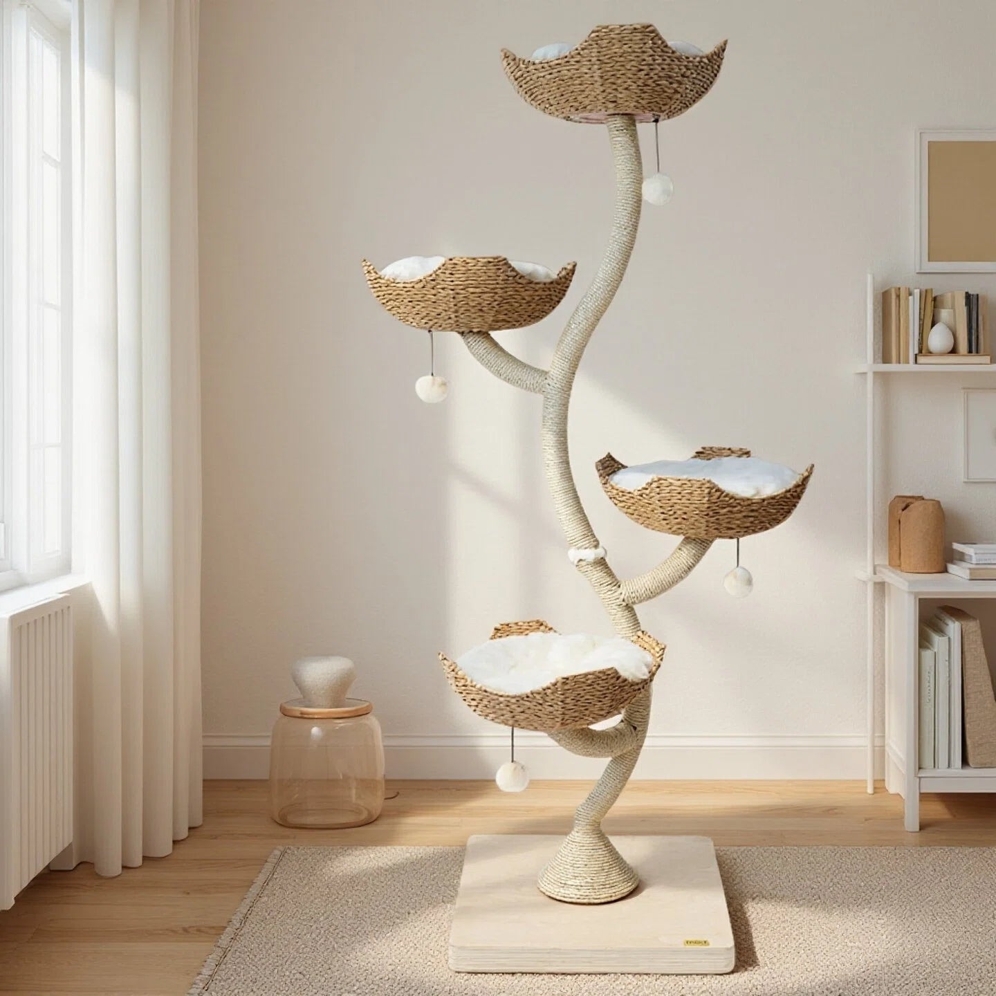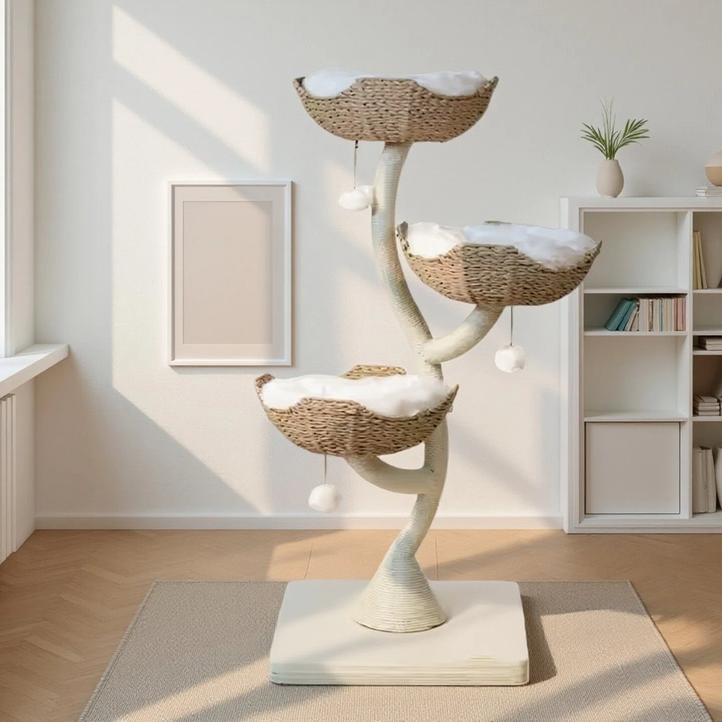 Latutu 3 Flower Woven Rattan Cat Tree With Soft, Removable Cushions, Fully Machine-Washable
